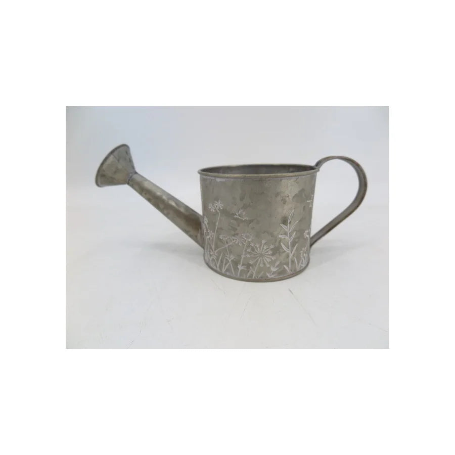 Garden-imprinted, nickel-coloured metal pot with liner.